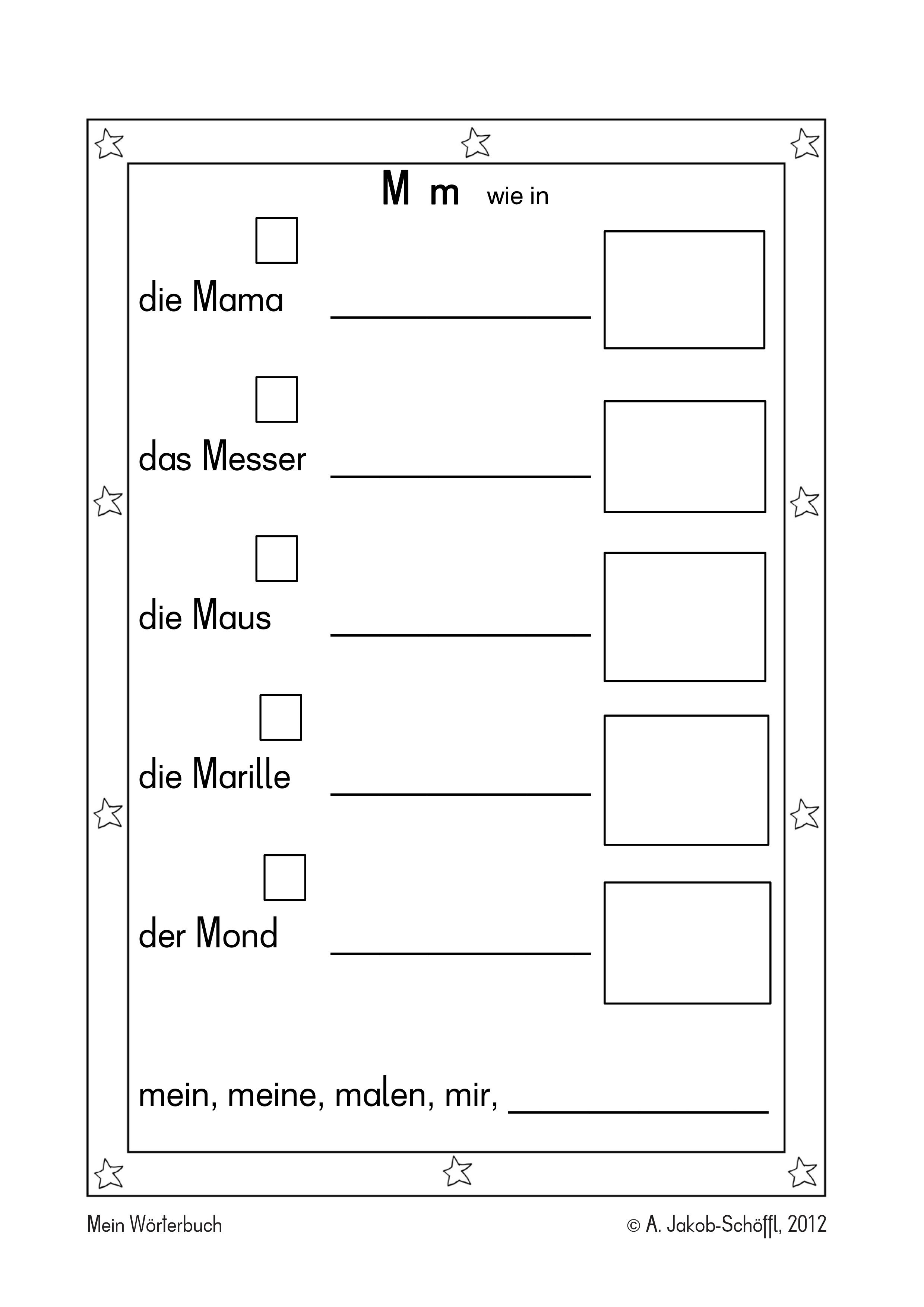 • Lies die Wörter! (eine Mischung aus Lernwörtern und leicht lesbaren sowie zeichenbaren Wörtern. Gemeinsamkeit : der jeweilige Anlaut / Inlaut oder die Rechtschreibbesonderheit) – Es entsteht ein Bilderwörterbuch.